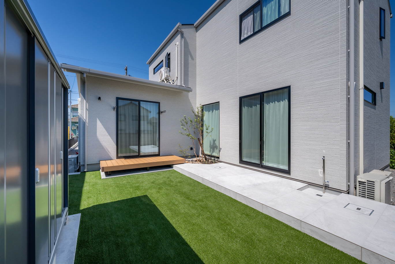 2025.12.02更新 透明感のあるシンプルモダンなテラス|住宅外構|石目調タイル|ムーンストーン 商品名: ムーンストーン 施工事例エクステリア建築外構 今回は弊社の住宅外構事例をご紹介させていただきます。 商品名:ムーンストーン ホワイト 600角 MS-6060-1 住宅テラスにムーンストーンをご採用いただいた現場です。 透明感のあるシンプルモダンな空間です。 昨今のテラスでは600角のタイルが非常に人気です。 おしゃれなタイルテラスがライフスタイルに広がりを与えます。 全3色のラインナップで、空間に合わせてお選びいただけます。 ムーンストーンはこちら