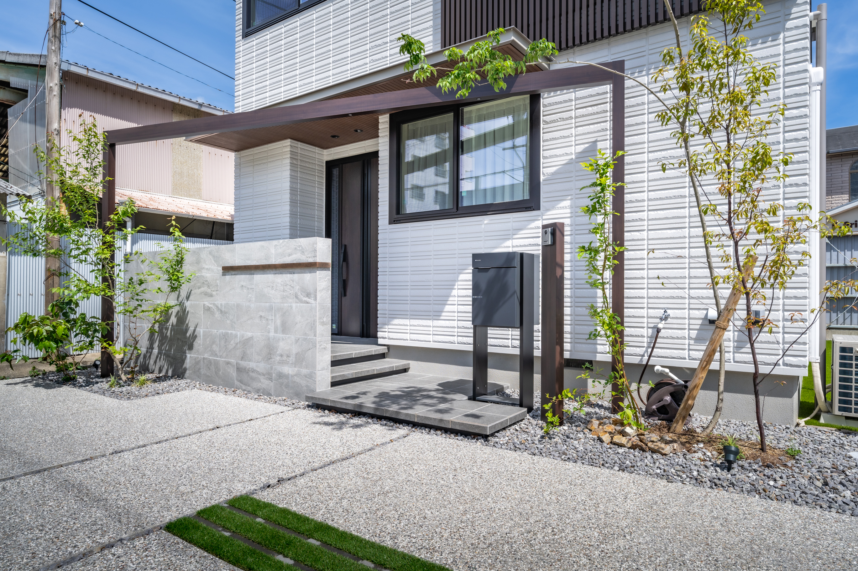 2025.12.02更新 石目模様が引き立つ門袖タイル|住宅外構|石目調タイル|ムーンストーン 商品名: ムーンストーン 施工事例エクステリア建築外構 今回は弊社の住宅外構事例をご紹介させていただきます。 商品名:ムーンストーン グレイ 600×300角 MS-6030-2 玄関門袖に「ムーンストーン」をご採用いただきました。 モダンな空間にブラジル産大理石のテクスチャーがポイントになっています。 門袖は住宅の顔です。シンプルですが石目模様がはっきりとした特徴を持つムーンストーンが引き立てています。 シンプルなタイルが多い中、アクセントタイルにおすすめです。 ムーンストーンはこちら